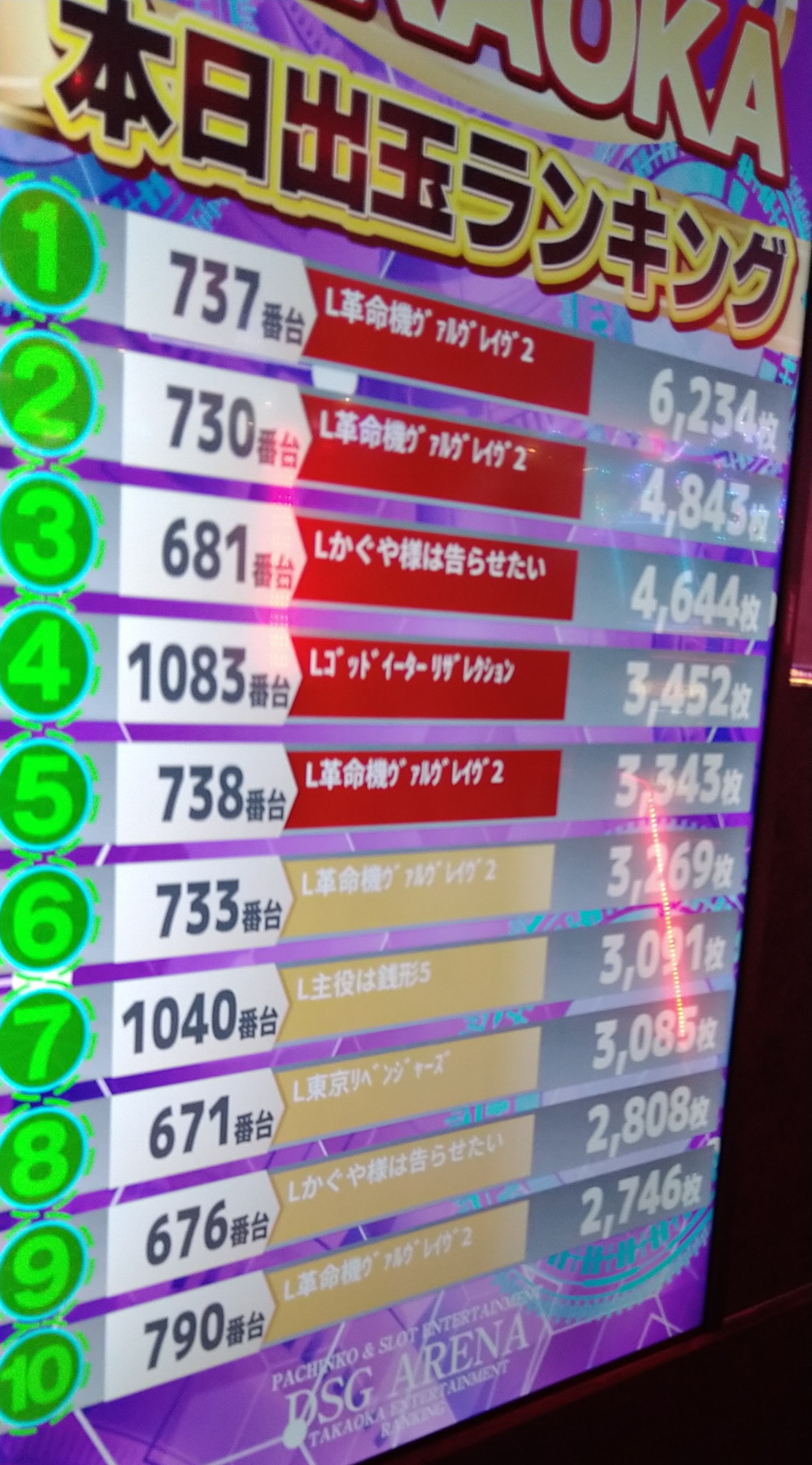出玉と関連性はあるかと出玉を確認しましたが、パチンコの方はベースに届いてる台は100台に1台あるかないかというレベルでしょう、スロットの方は平均設定が1.5程度だと見えました