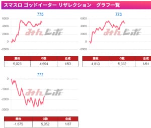 一撃は出ていないが、3台ともコンスタントに当たっており、ベースが高かったか。高設定は有利切ったらしっかり出てくれる印象なので⑥は無いかも?