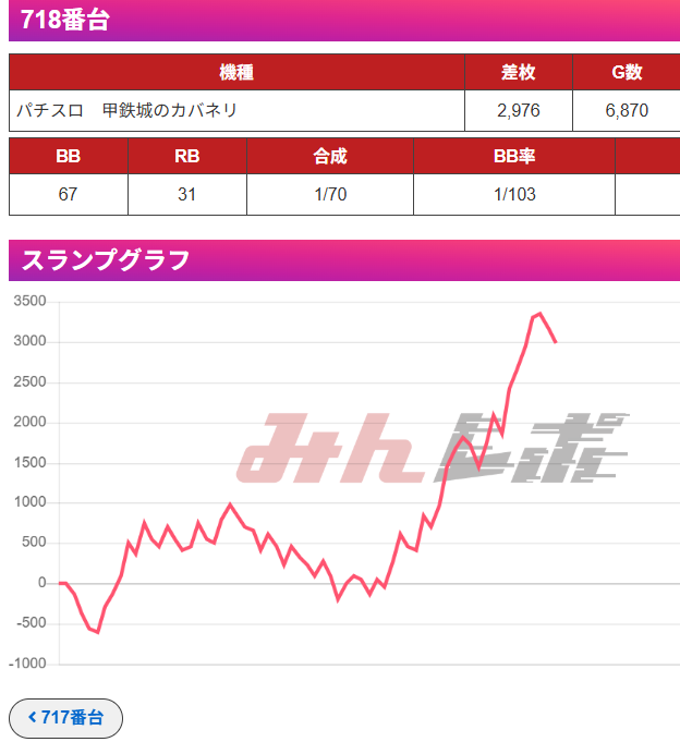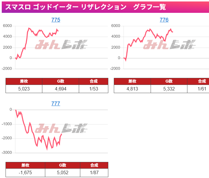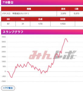 ここも平均差枚+4000枚と超優秀な結果となっています。設定面も期待でき、全⑥まで見えますね。スマスロもしっかり扱っていく姿勢を見せているので今後もスマスロは狙えそうですね。