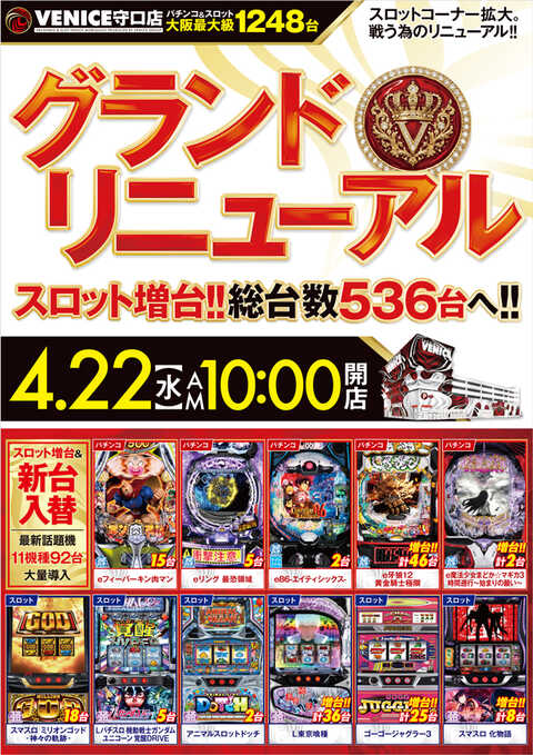 1. 4/22のリニューアルオープンでスロット増台