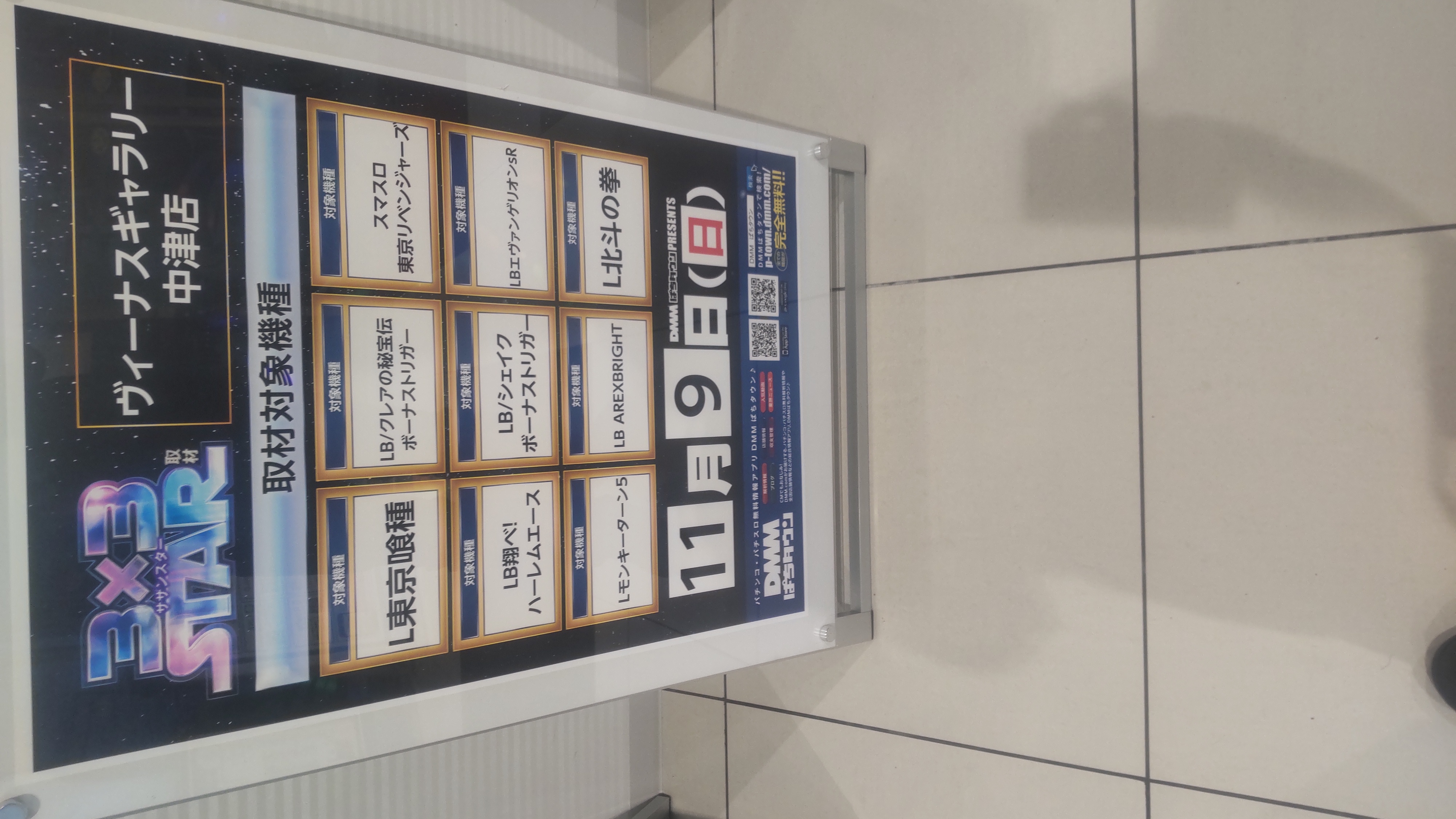 10月12日に来店実戦、15時位に来店しました。近場のマルハン中津の特日でしたが、そちらを先に覗いて来たところ、三連休ど真ん中の日曜日で絶賛回収日だった為移動し、急遽こちらに変更。当日はビーナスグループ合同の特日(10月10日から13日迄)且つ取材日でした。某スマスロ機種を初打ちし、6000枚強の出玉を獲得!以下は評価になります。