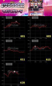 8台設置のアイムジャグラーからは候補発見できませんでした。