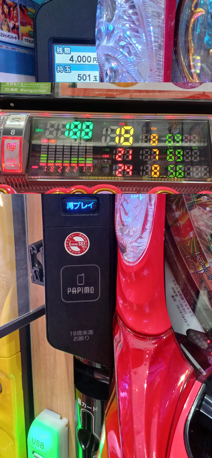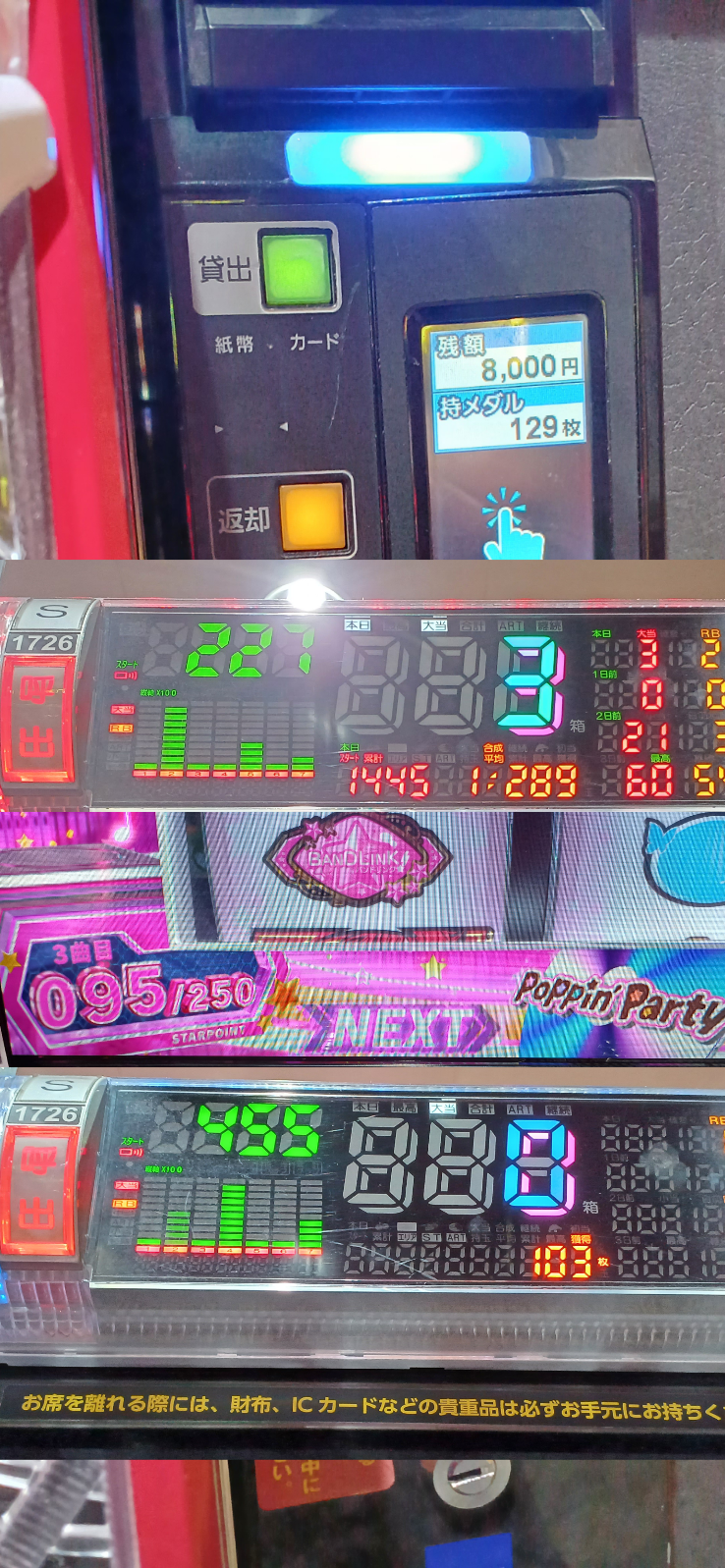 閉店後データ見たら設定4以上はありそうなのではっておきます。