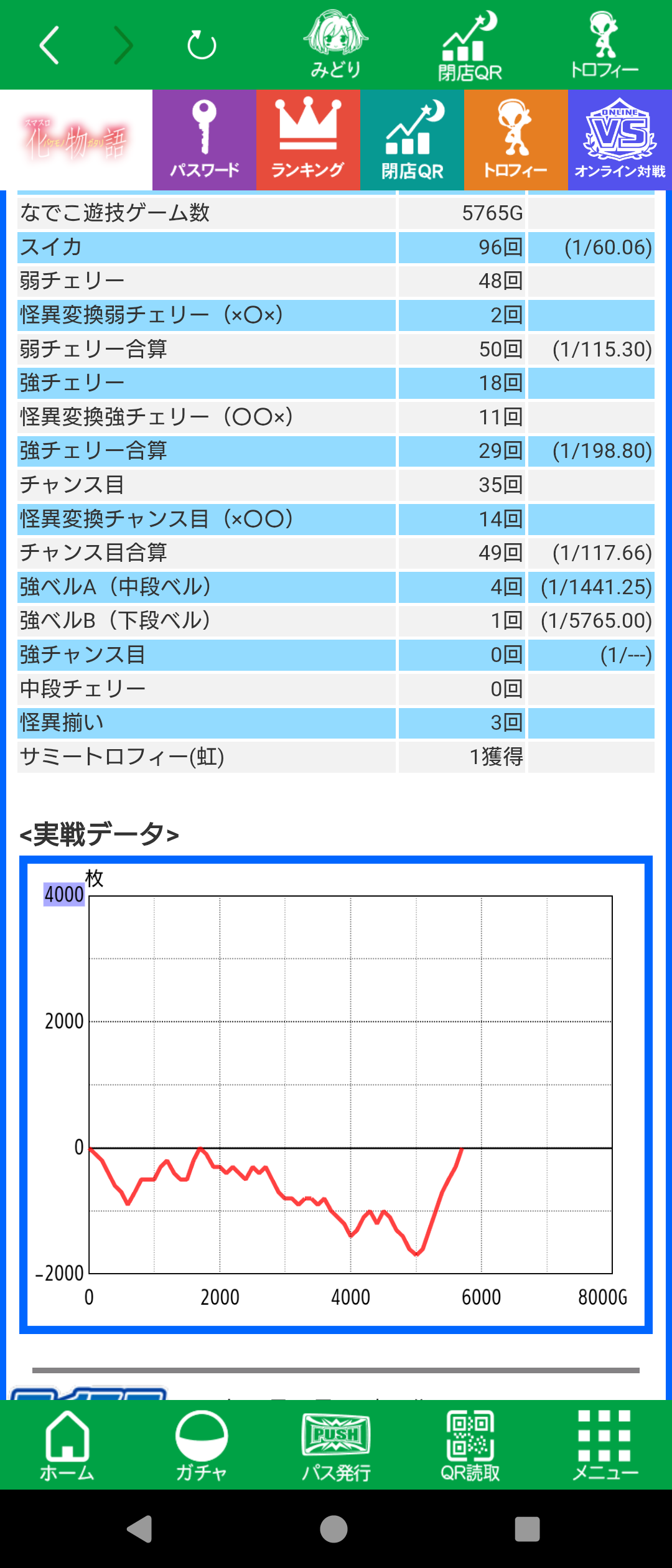 化物語の角台が空いていたので遊技していると人生初の虹トロフィーを見ることとなりました! 只謎の力によってジリジリ沈む厳しい実践結果でした…