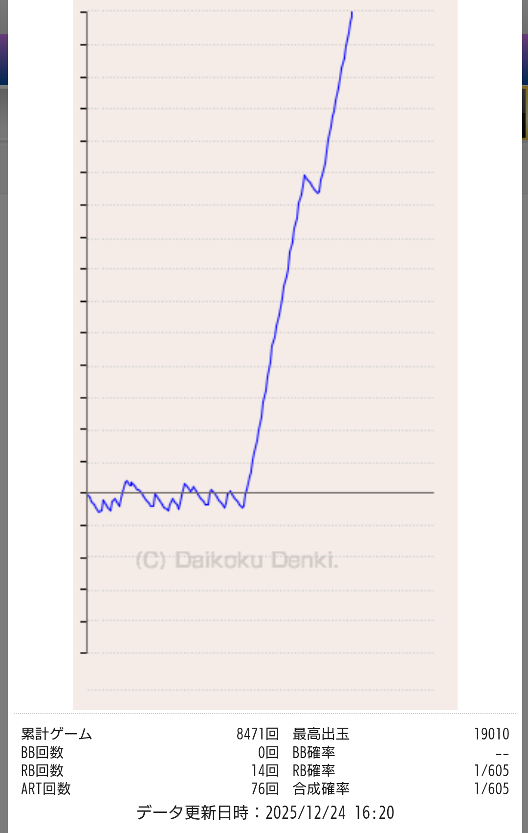 (主役は銭形5 611番台は、15時台迄±0付近を行き来する何とも言えない挙動から突如上昇。24連、16連、4連の三撃でのコンプリートでした。)