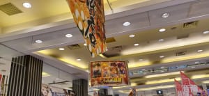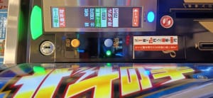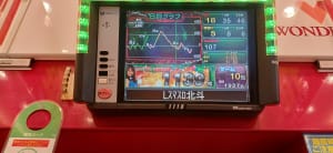 前回入店時もあったが1パチの海の島の位置が分かりやすくなっており、和太鼓が目印となっており、その他、景品カウンター近くは北斗転生2の宣伝パネル&映像が置いてあった