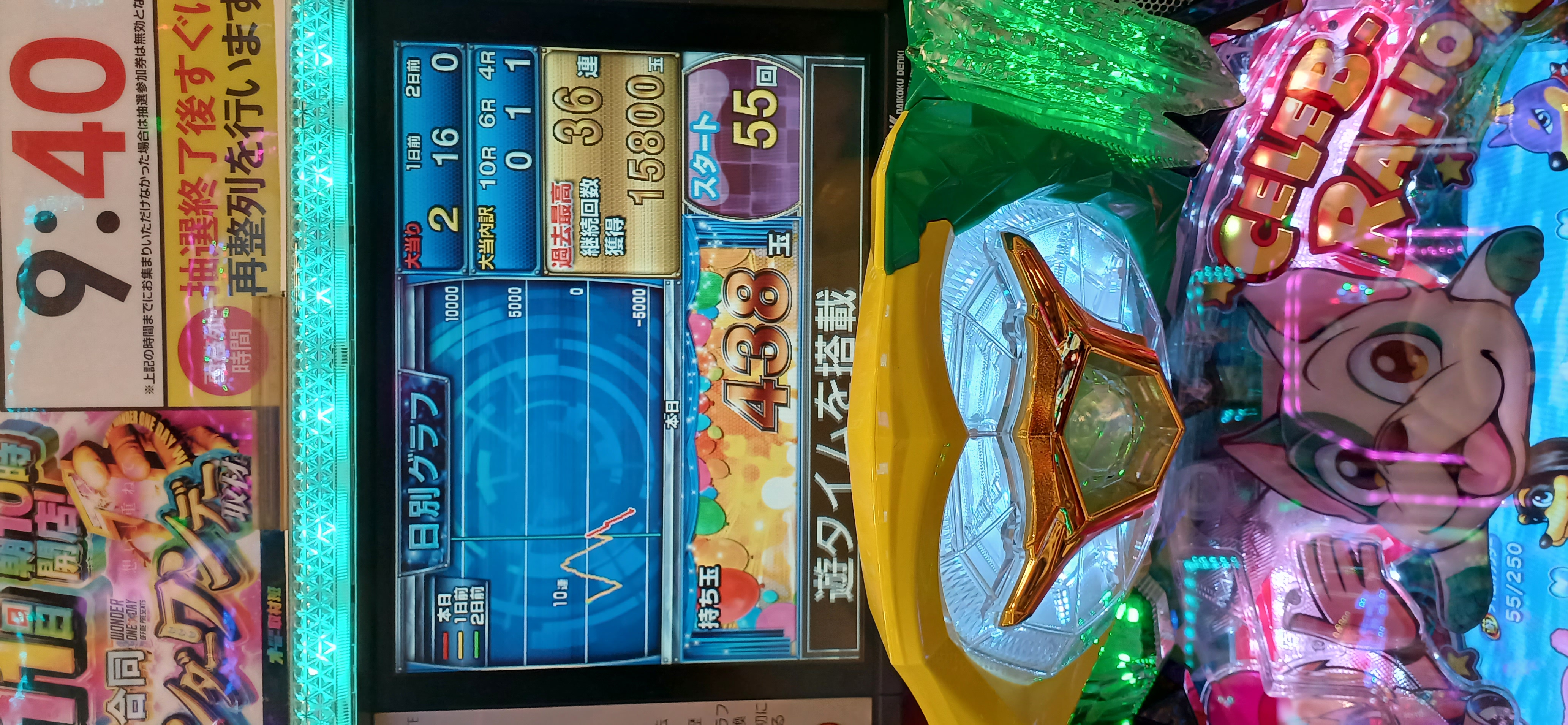 赤7当選,白だったが、高速で雲が流れ、倒れ、