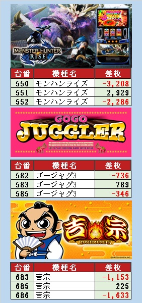 あとこのグループ全体のあしゅら開催は高設定の割が低く、判別に時間のかかる機種(ジャグ系)にしか大半は設定が入りませんので、期待して行かれる方はご注意を?