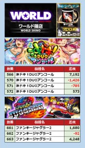 P-WORLD表記が曖昧で設置機種の台数がはっきりしませんが、20台設置がはっきりしている人気台を筆頭に、この日は下記機種に注目したいと思います。