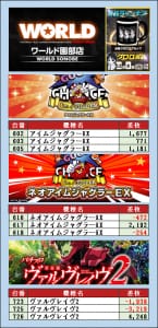 P-WORLDに台数の表記がないので、16時時点の店内の突出機種の状況解説。