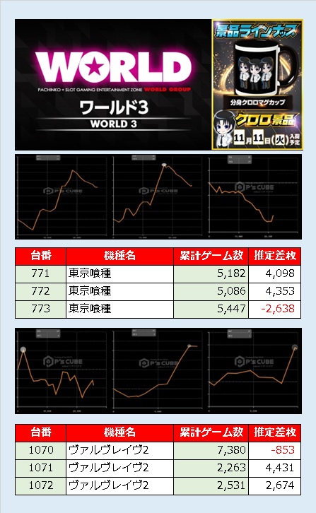3台並びの箇所の稼働/結果が伸びきらなかったのがもったいない!