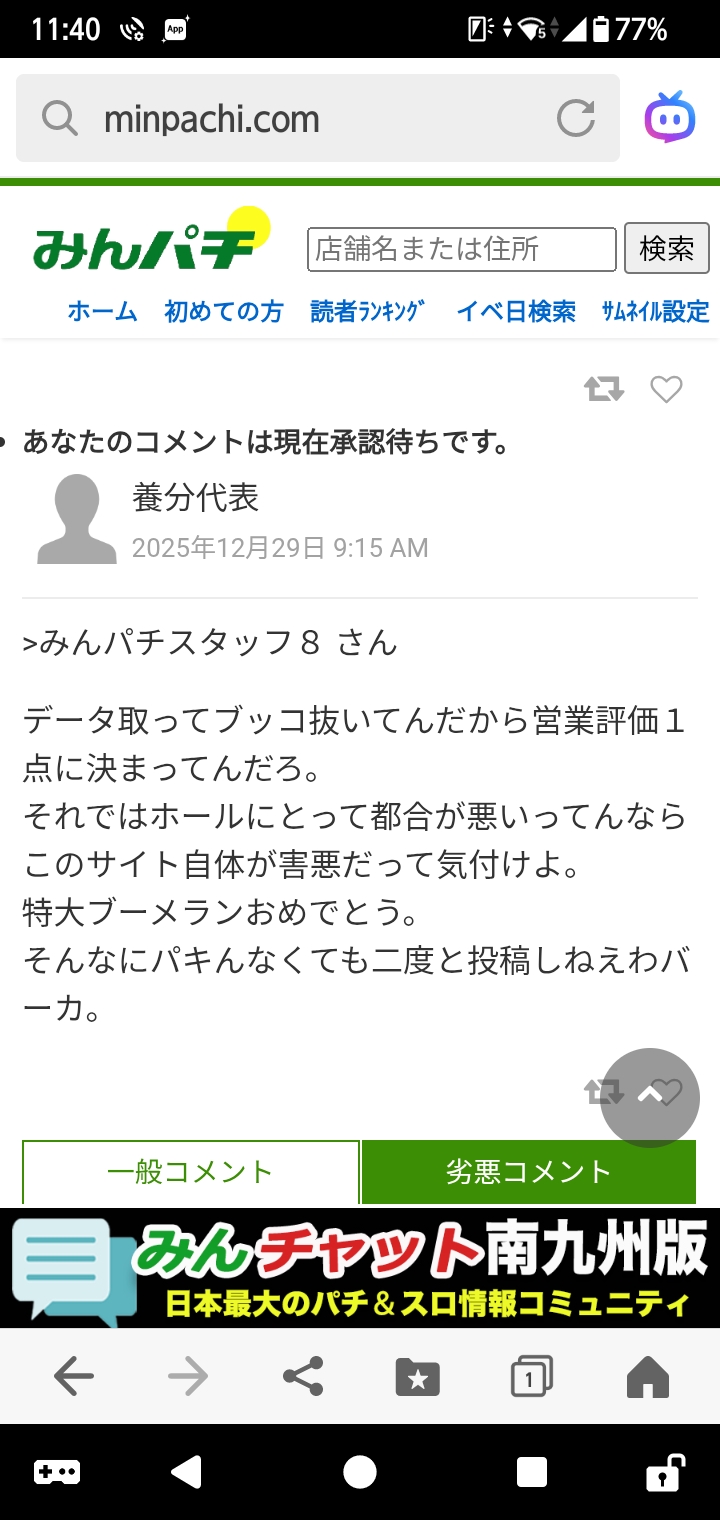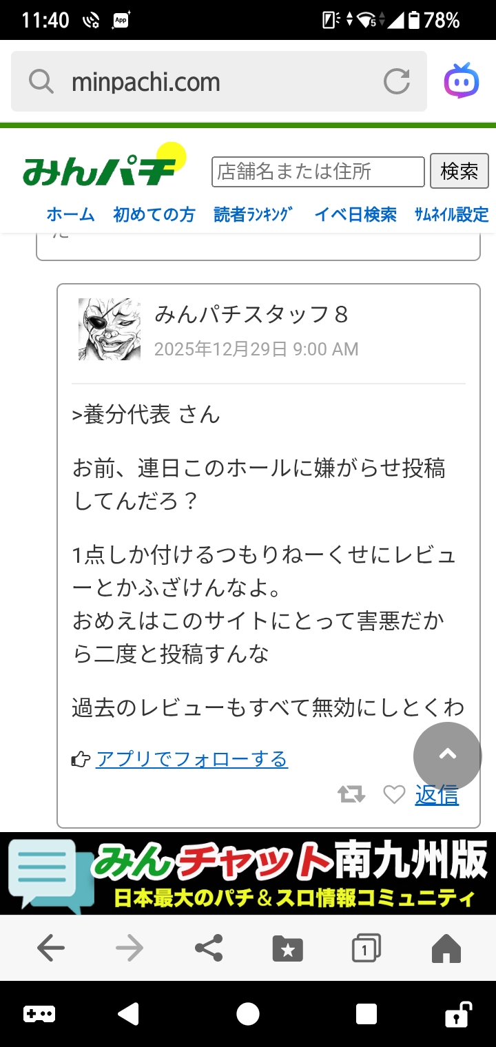 こいつ(みんパチスタッフ8)はスタッフを名乗っていますが、スタッフではなく単なる荒らしです。