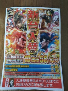 スロットは昼過ぎまでは回数もあがってなかったが夕方近く後ろに枚数表示がたちだした!いつもの三共闘よりは出している感があったが差枚数的にはマイナスの台もあり稼働率だけが上がった様なイベント!