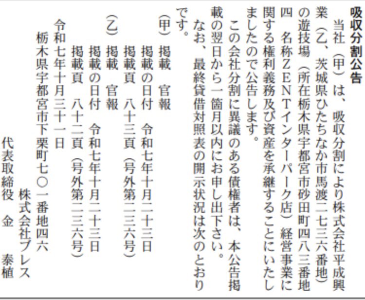 1. 株式会社ブレスがZENTインターパークをM&A。